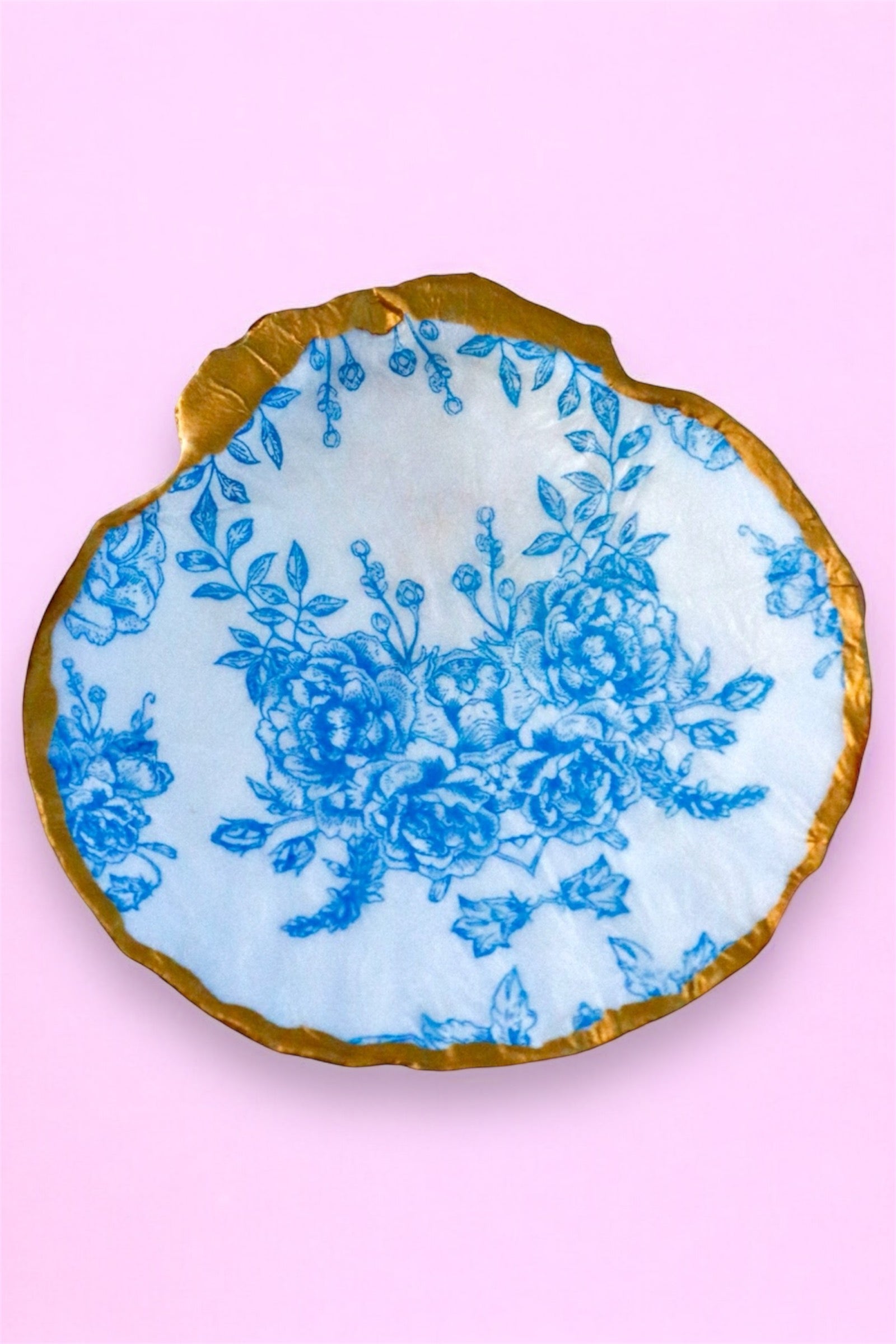 - Blue floral Inner design with gold edge detail