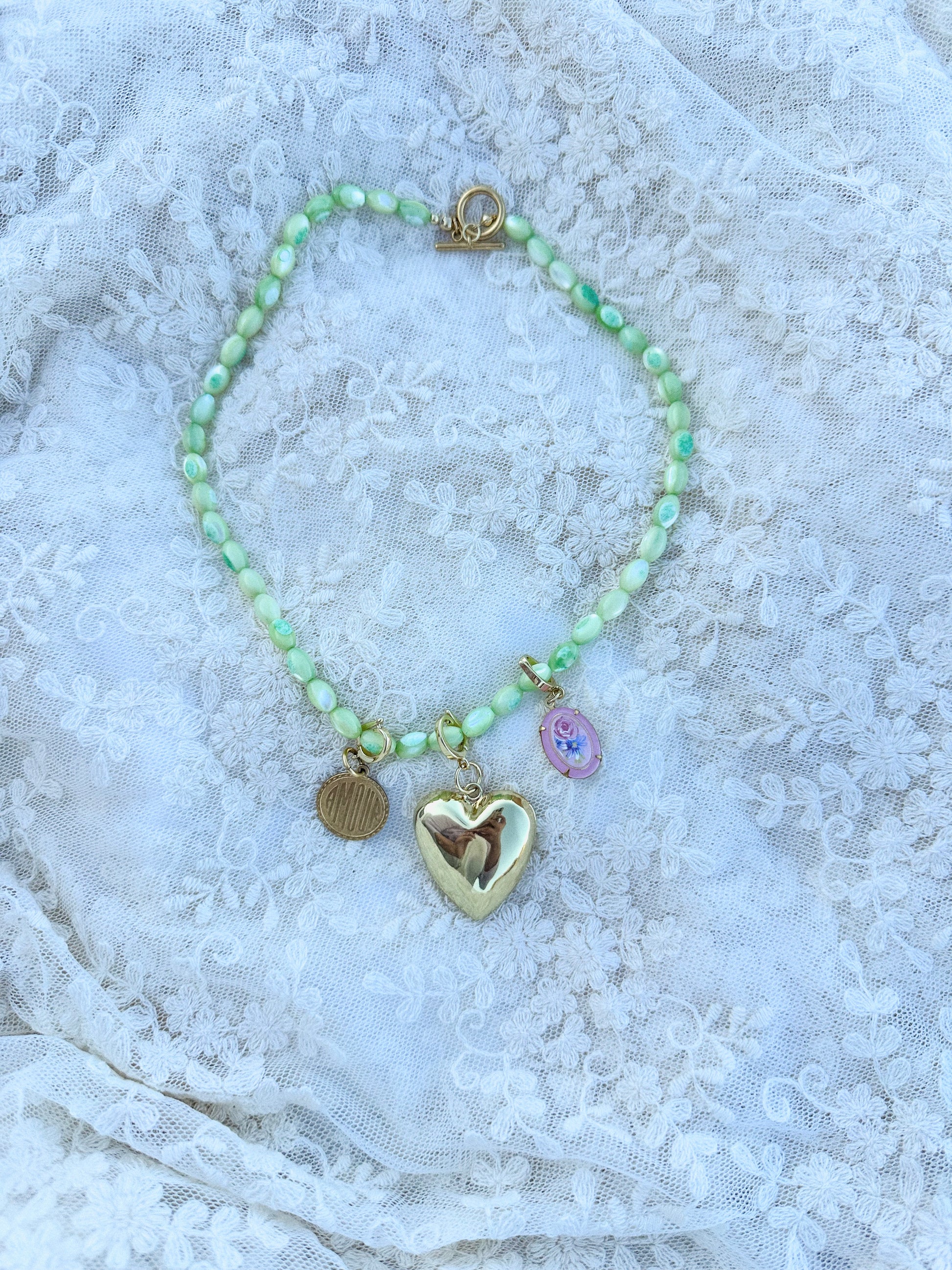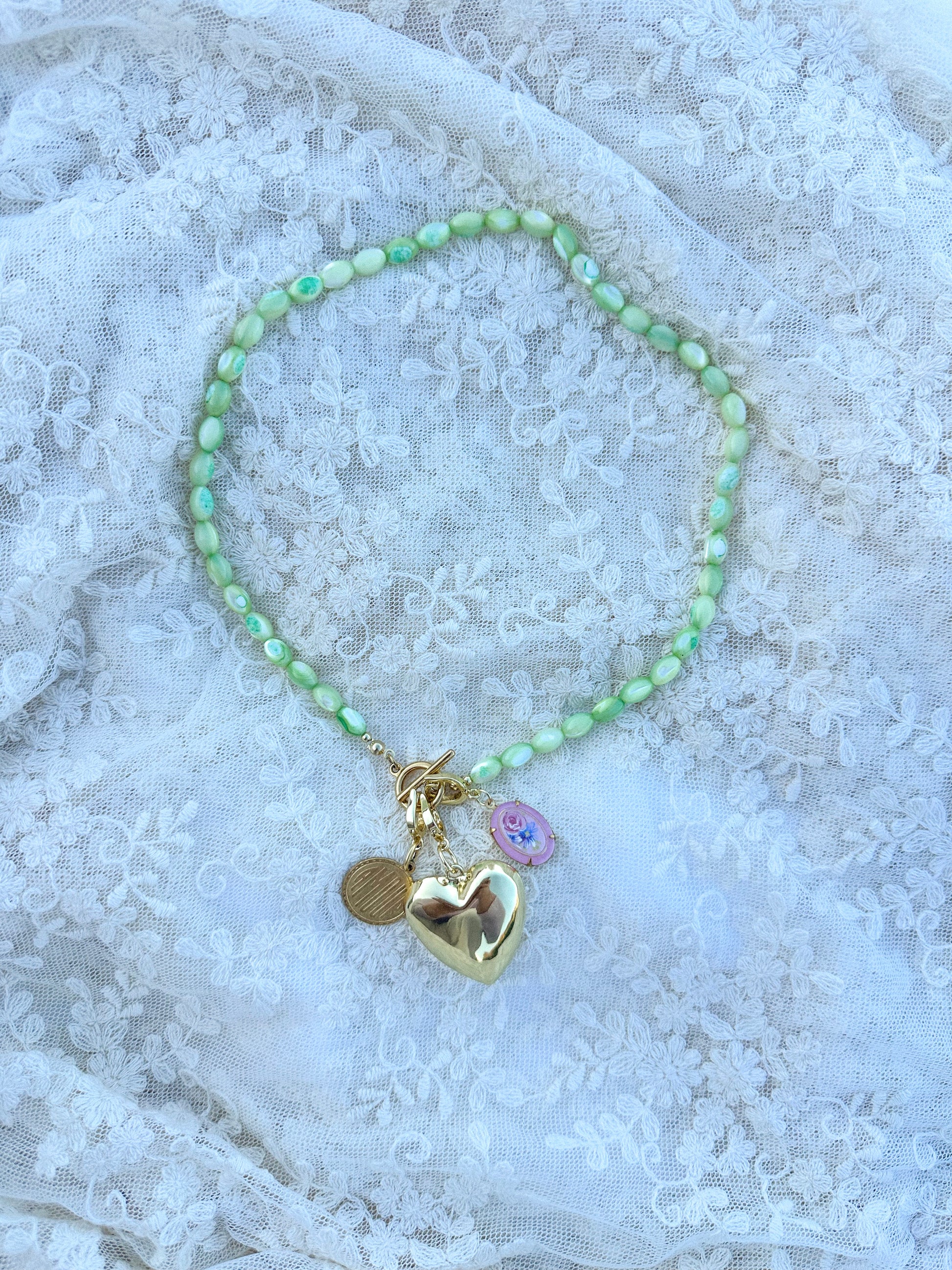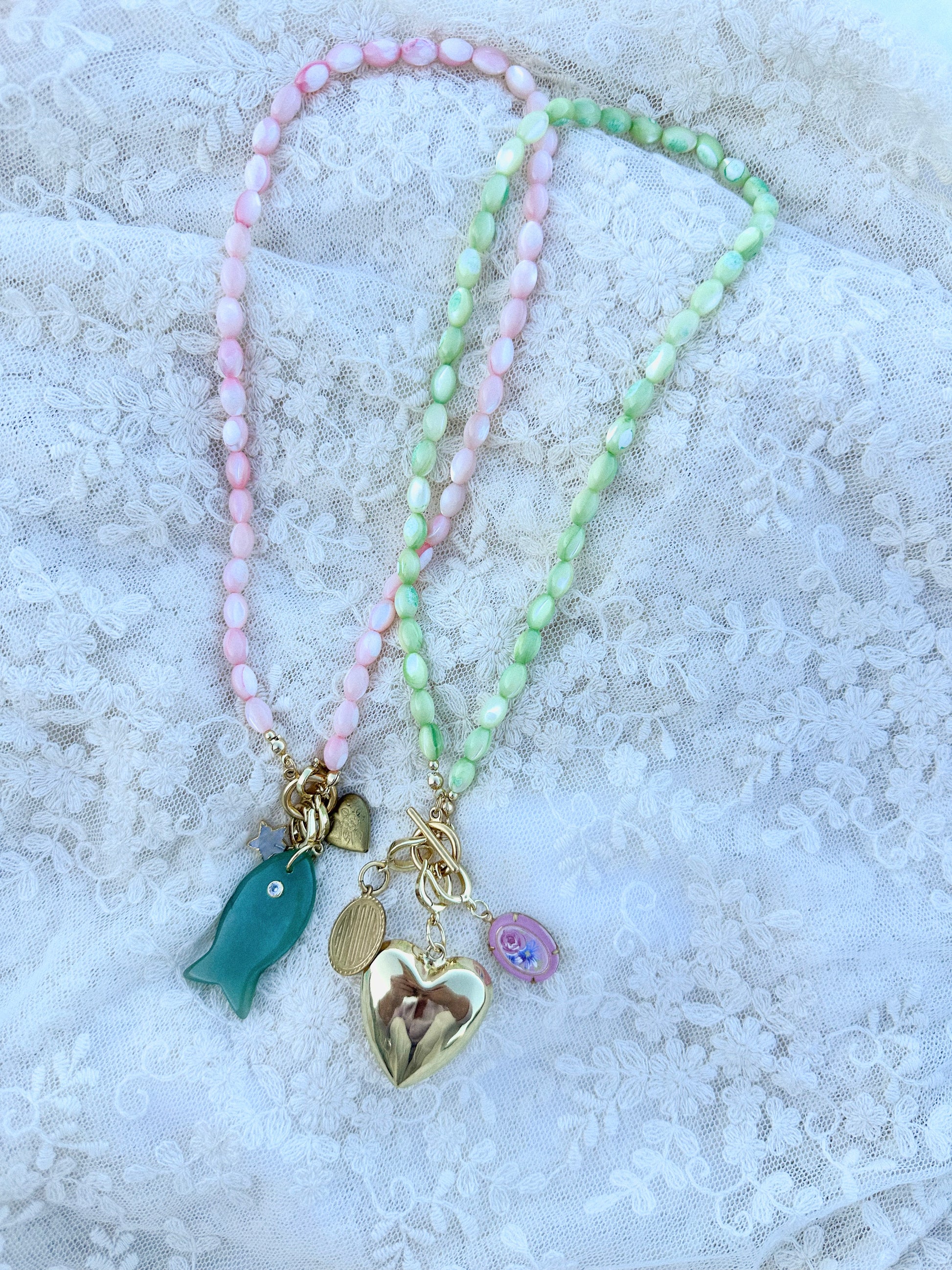 This option is for a mother of pearl beaded chain, 1 pendant + 2 charms.