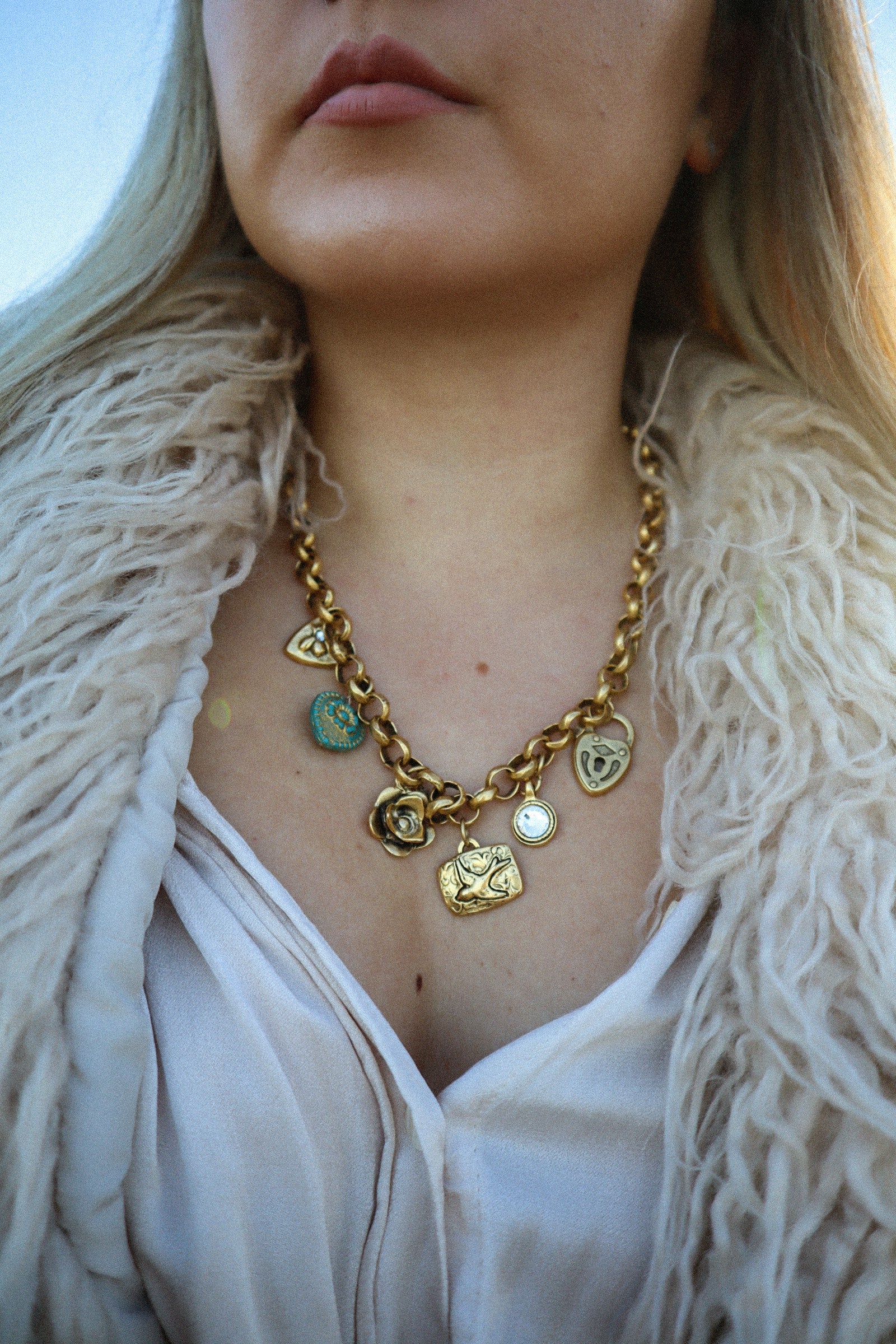 The Encanto necklace brings all the vintage flair. With six unique vintage inspired charms, it makes the perfect statement piece for your self or as a gift.