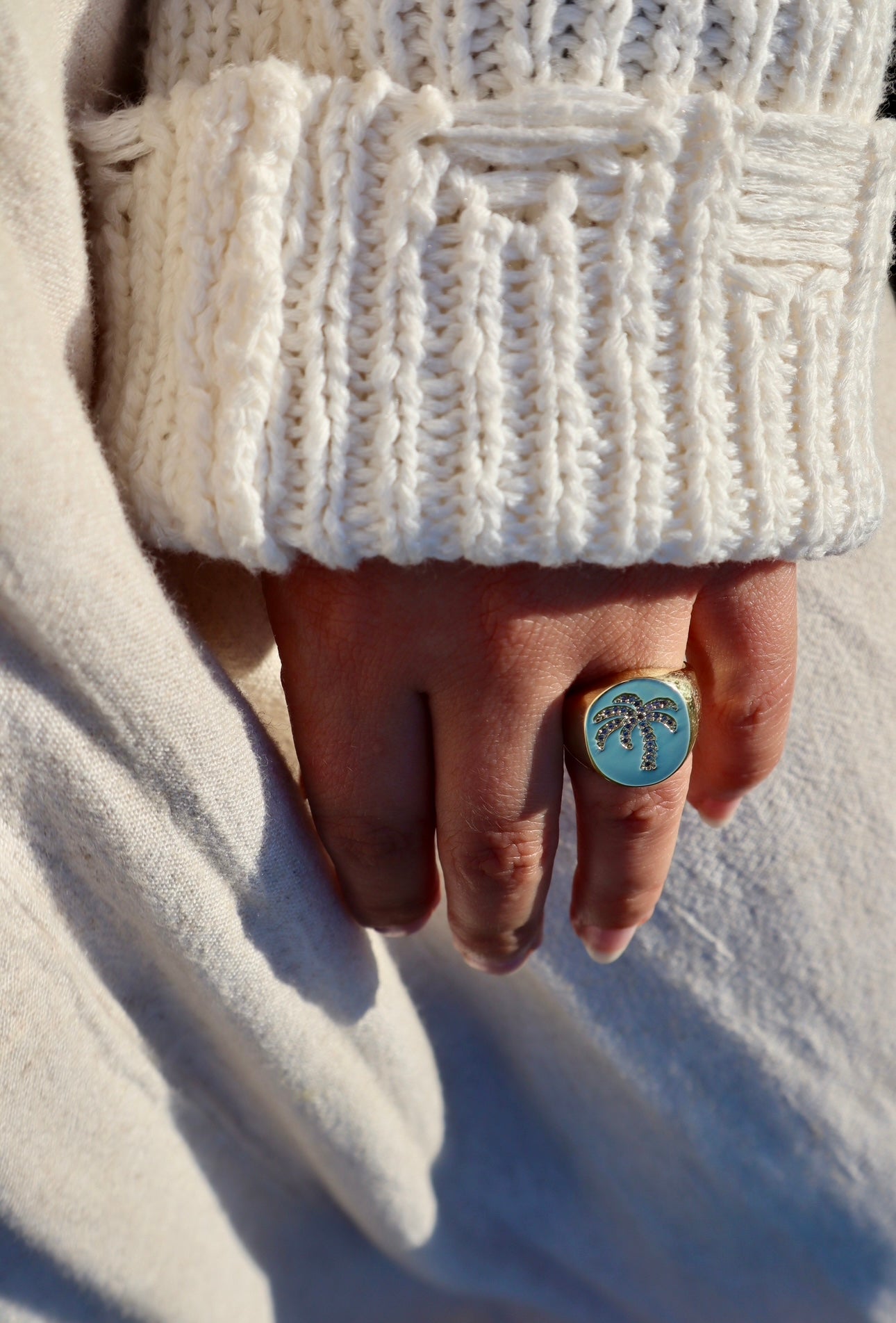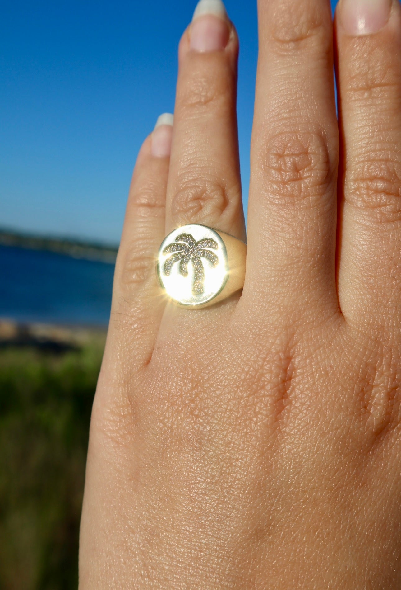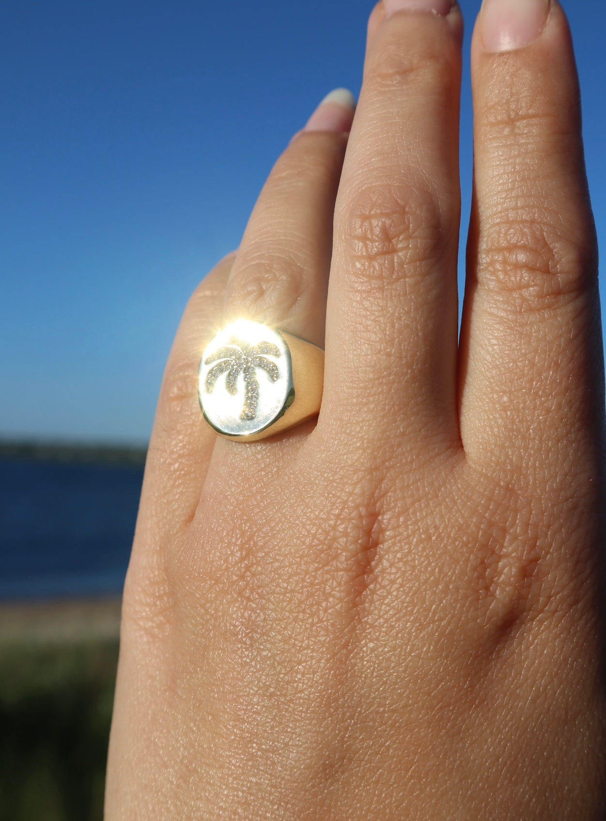 Add a little summer statement to your hand with this fun and chunky palm signet ring. Size 4 (fits most ring and pinky fingers.) Please measure finger before placing order.