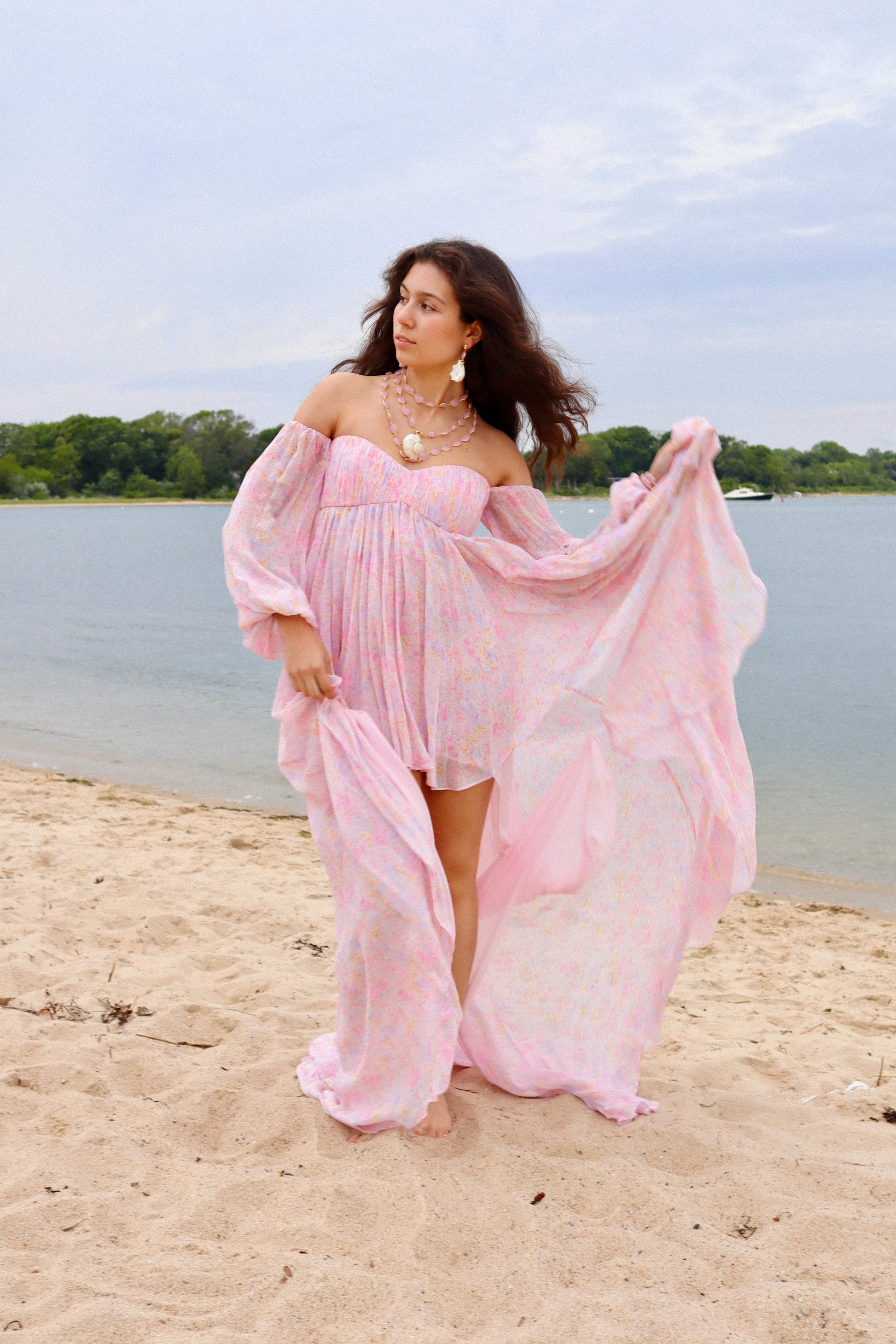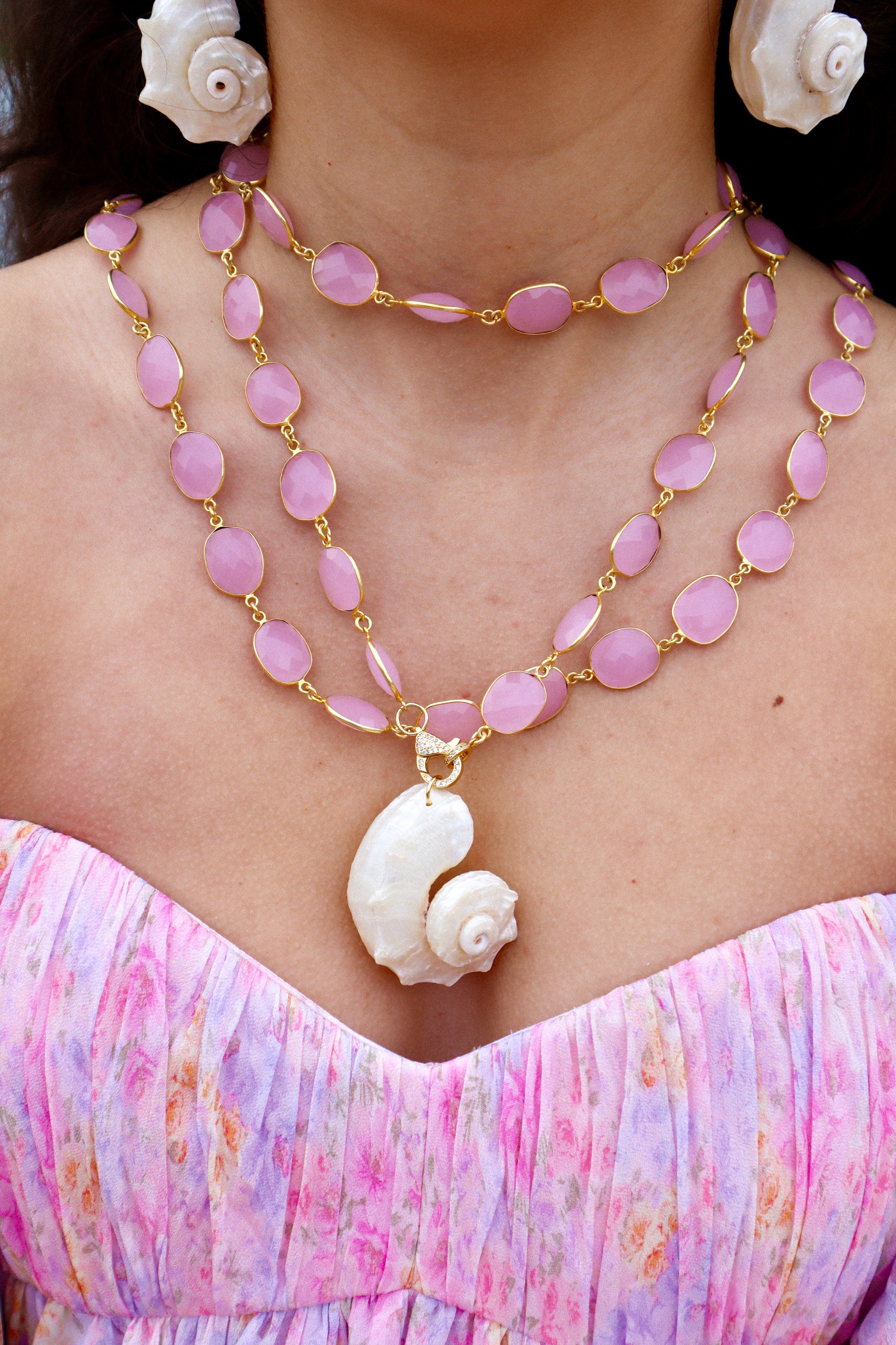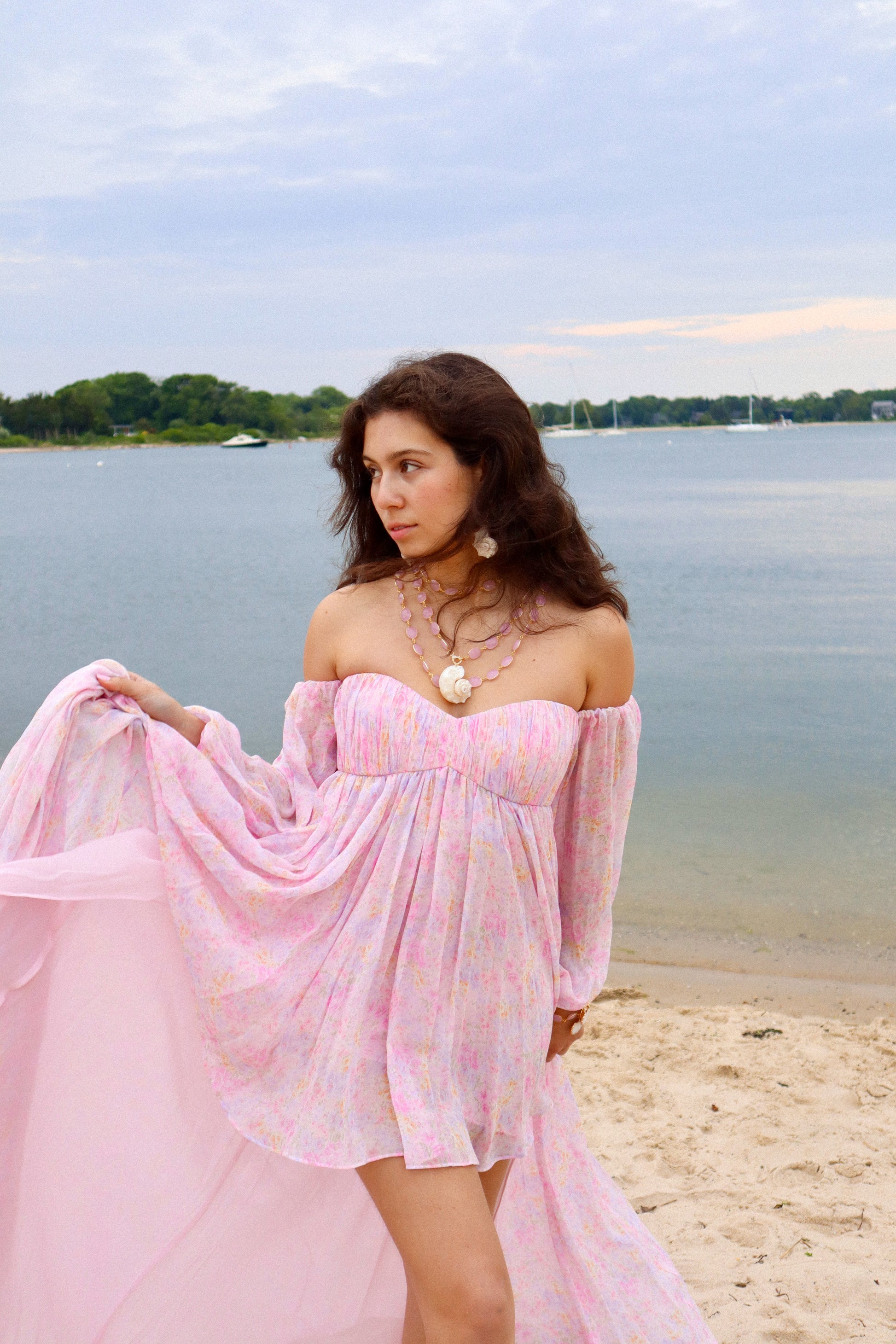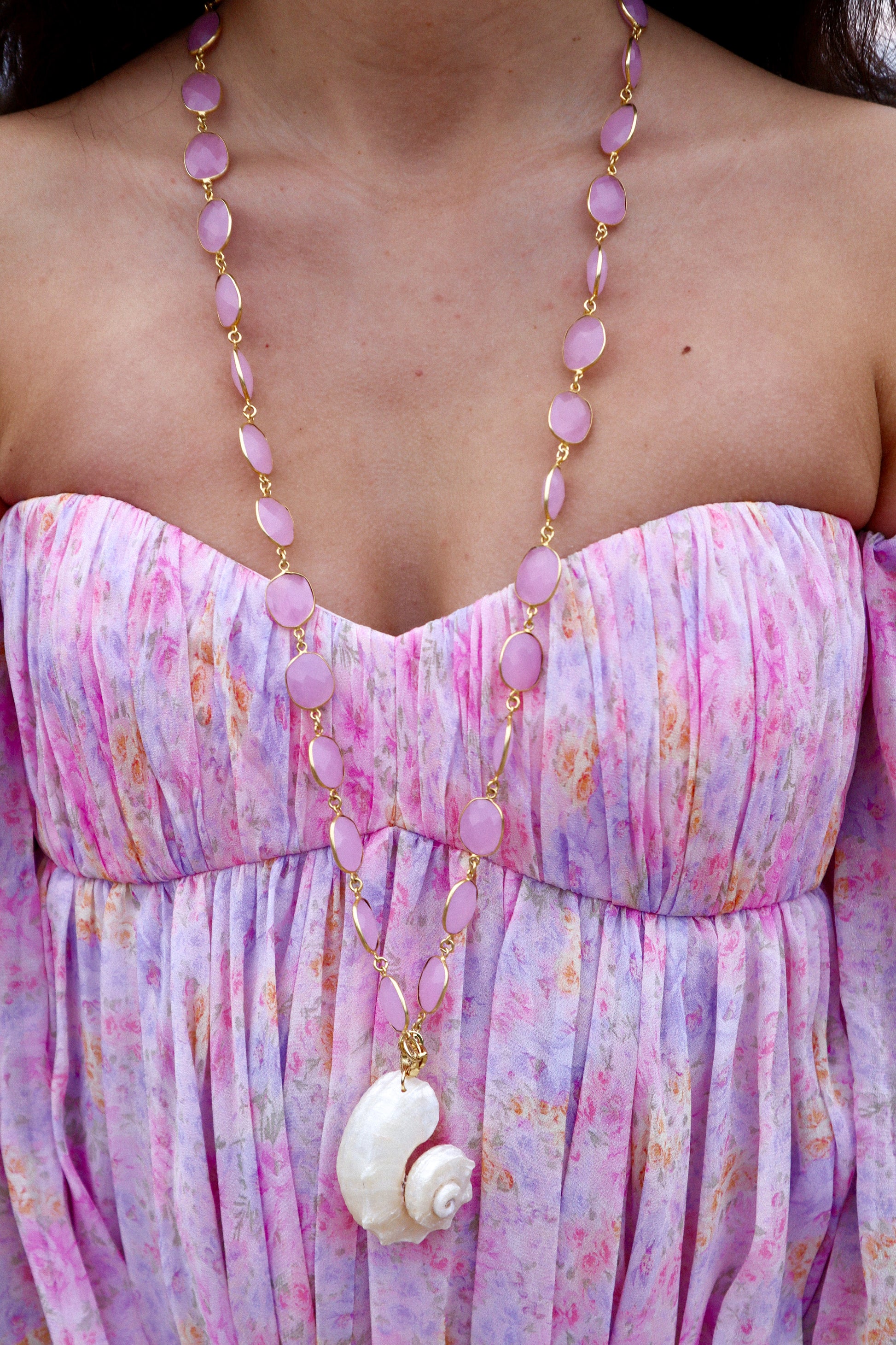 A soft, romantic whisper of summer captured in a necklace. Wear it long or wrapped around for a layered look. Pendant is removable.