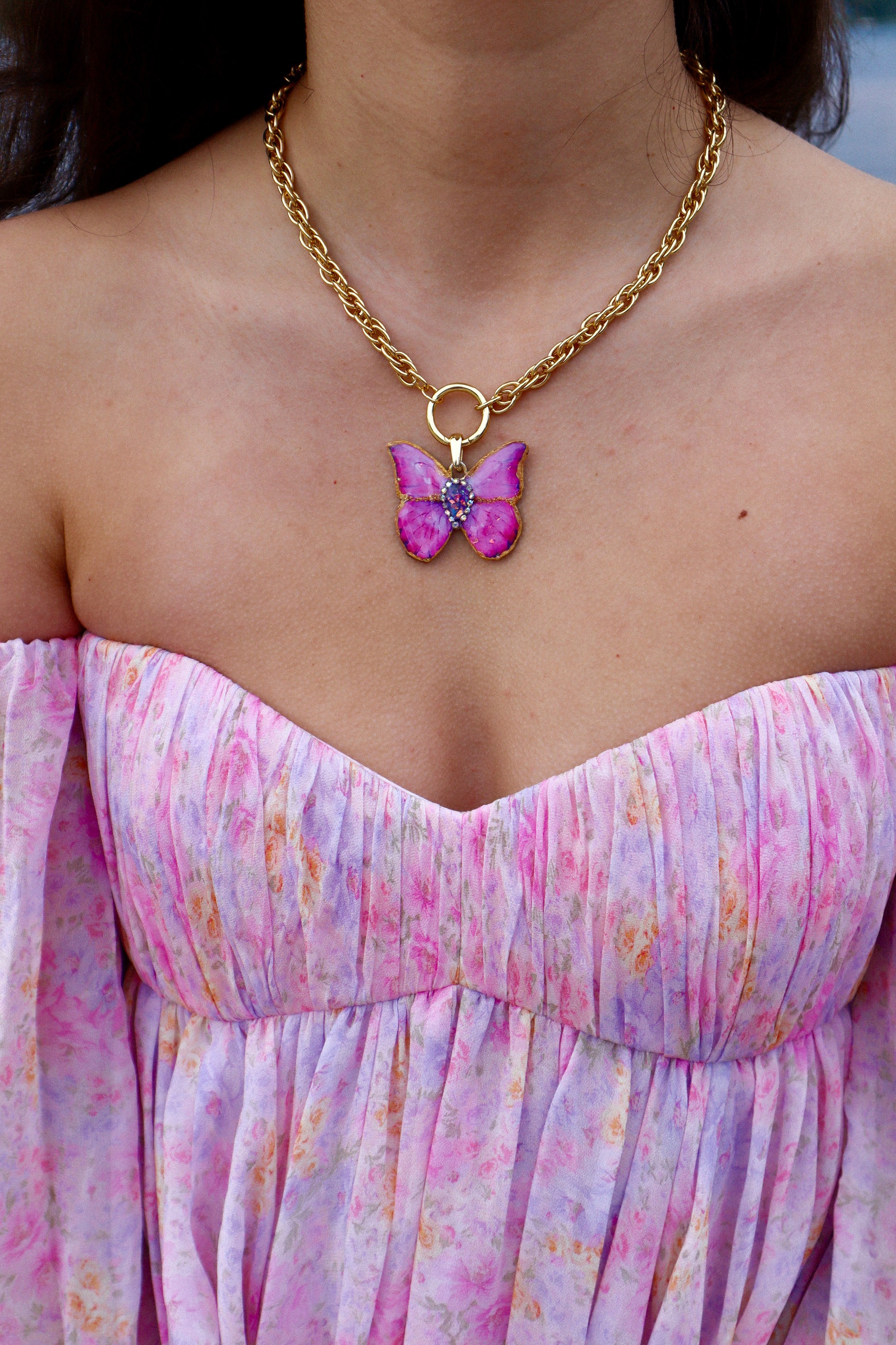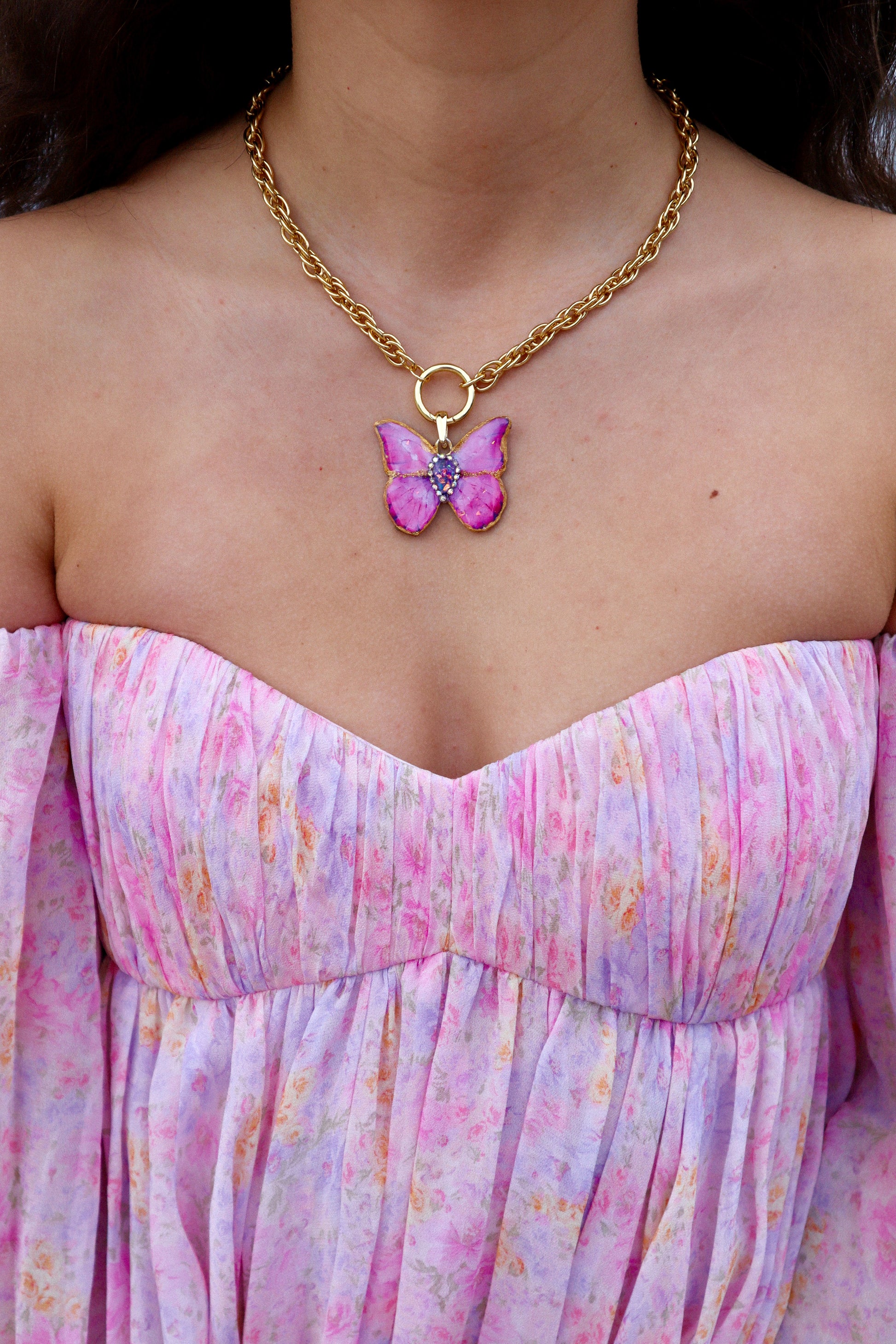 As if plucked from a garden daydream, this enchanting necklace features a delicate butterfly pendant that seems ready to flutter away at any moment.