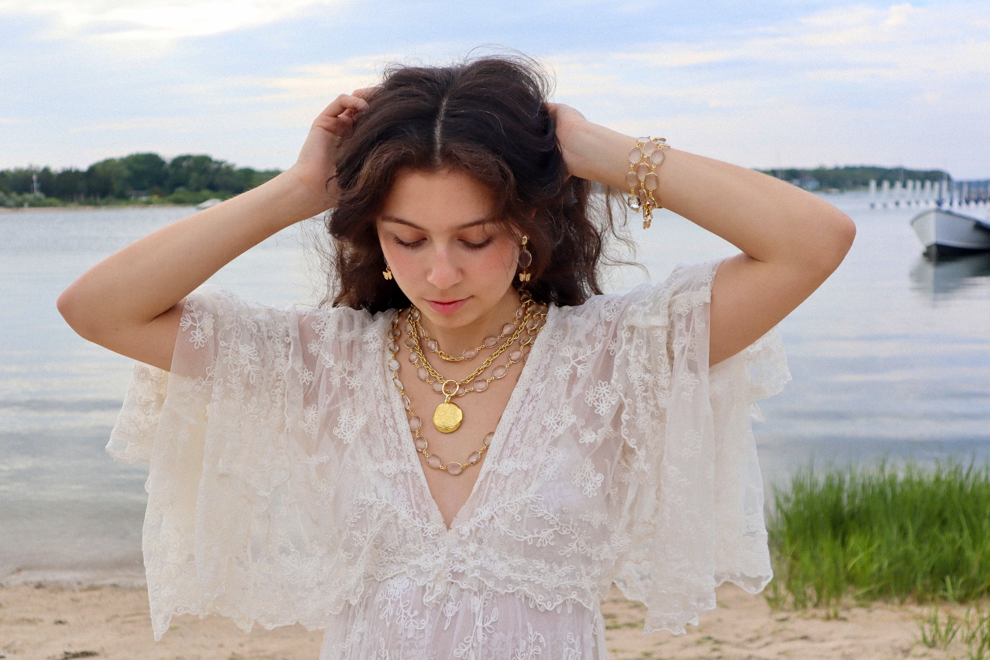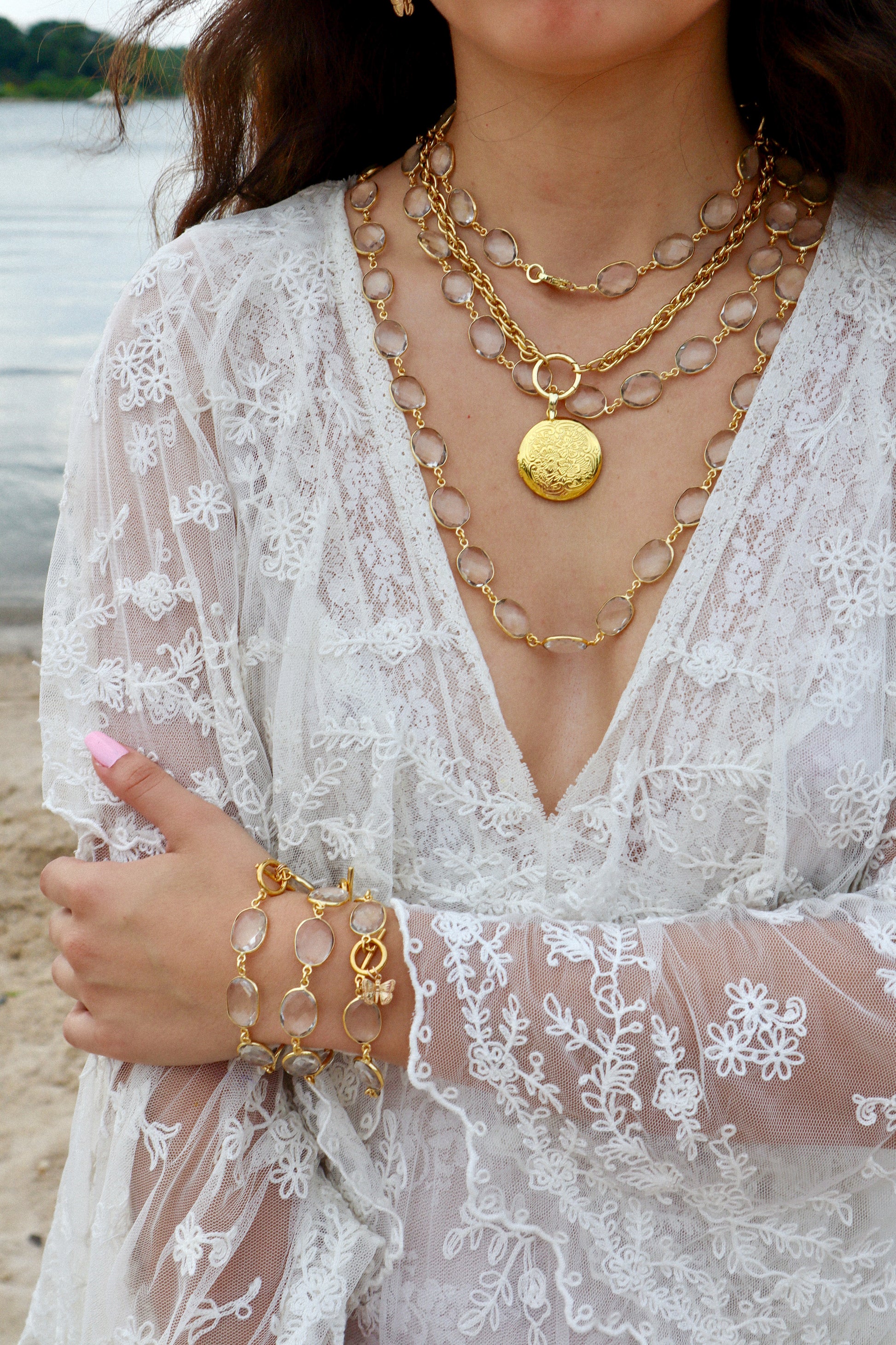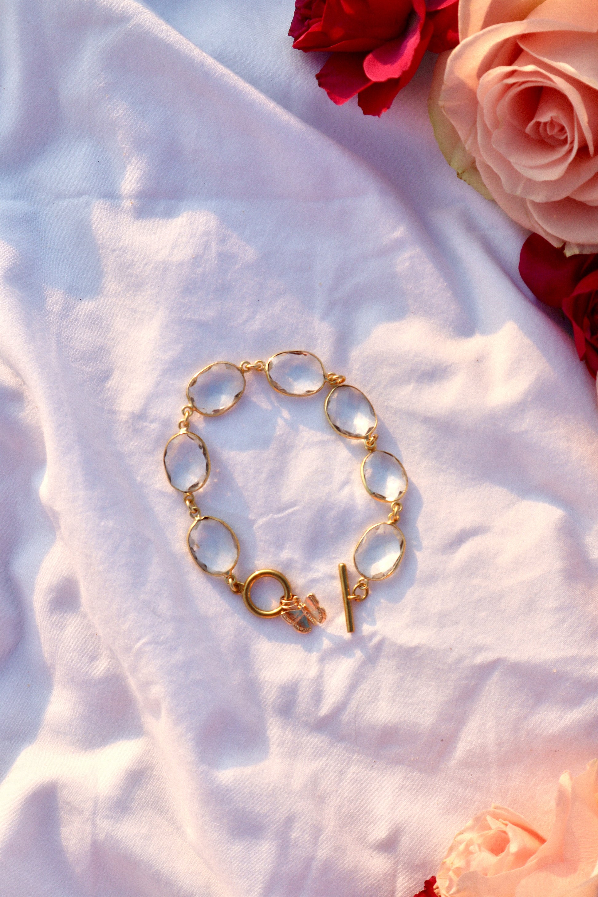 Like a sunbeam captured in a drop, this bracelet shimmers with the soft glow of summer's golden hour.