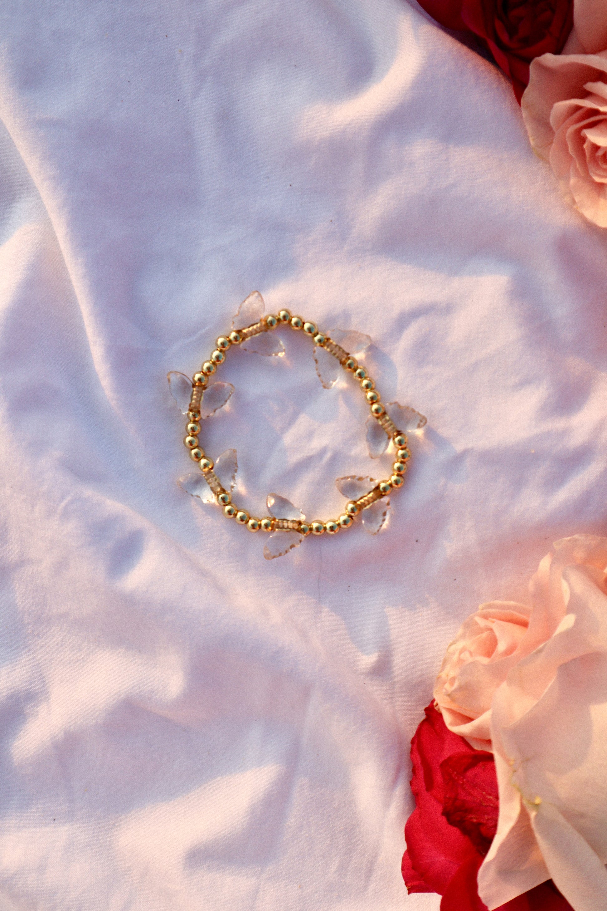 This darling bracelet is adorned with clear butterfly charms that seem to twirl mid-air.