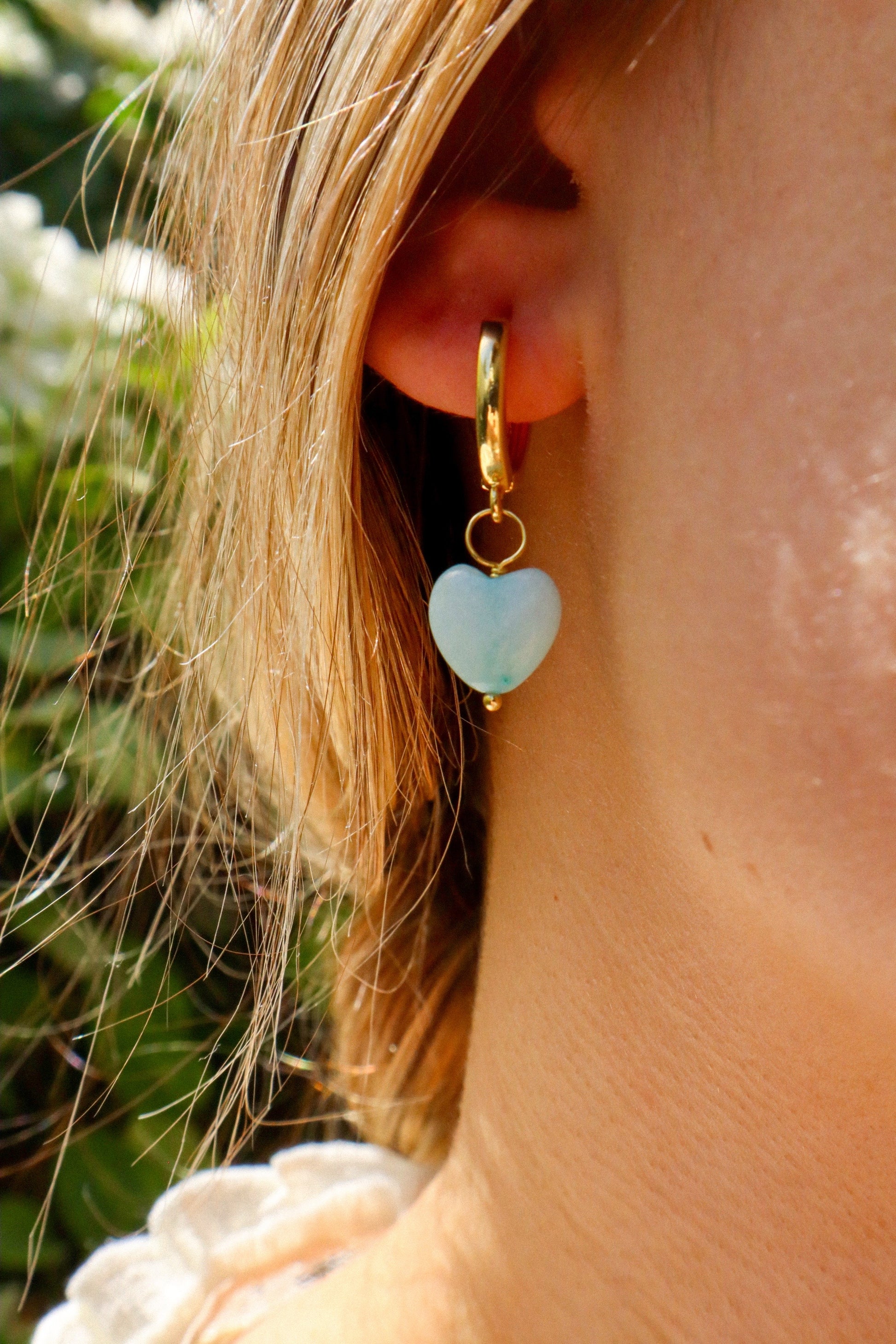 Tiny treasures, full of charm and sweetness—meet the Sweetheart Earrings, where vintage romance meets playful whimsy. Dangling from gold filled huggie hoops, these petite gemstone hearts sway with every movement, catching the light and adding a touch of magic to your day.